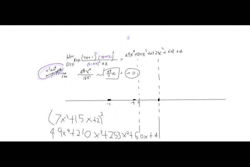 - Find horizontal/slant asymptote by comparing degrees or doing long division.