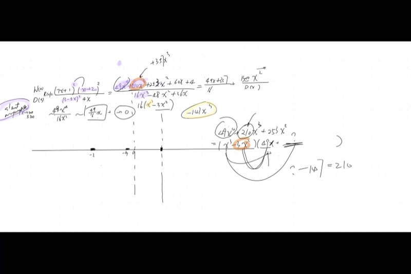 \[\frac{49x^4 + 210x^3 + 253x^2 + 60x + 4}{16x^3 - 48x^2 + 36x}\]