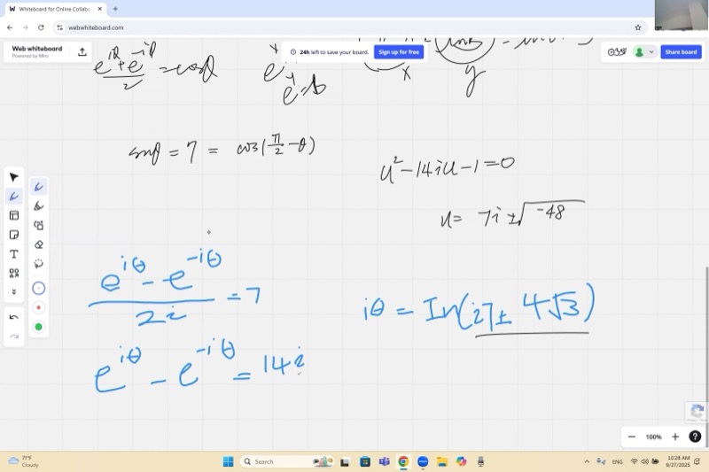 It turns out complex numbers save the day. By connecting Euler’s formula \(e^{i\theta} = \cos\theta + i\sin\theta\) with logarithms, we can solve “impossible” trig equations – and the answers are complex angles. This is the same math that powers signal processing, quantum mechanics, and electrical engineering.