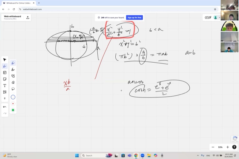 - The ellipse is a dilated circle — stretch a circle of radius \(b\) horizontally by the factor \(a/b\) and you get the ellipse. This gives the area formula \(A = \pi a b\).