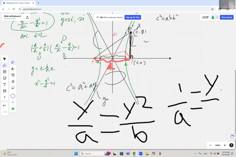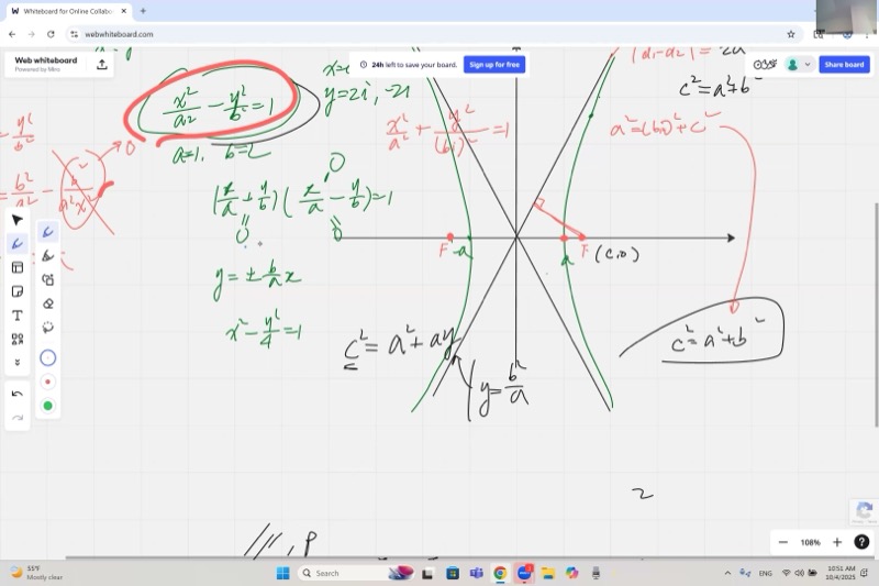 | Foci of hyperbola | \((\pm\sqrt{a^2 + b^2},\; 0)\) |