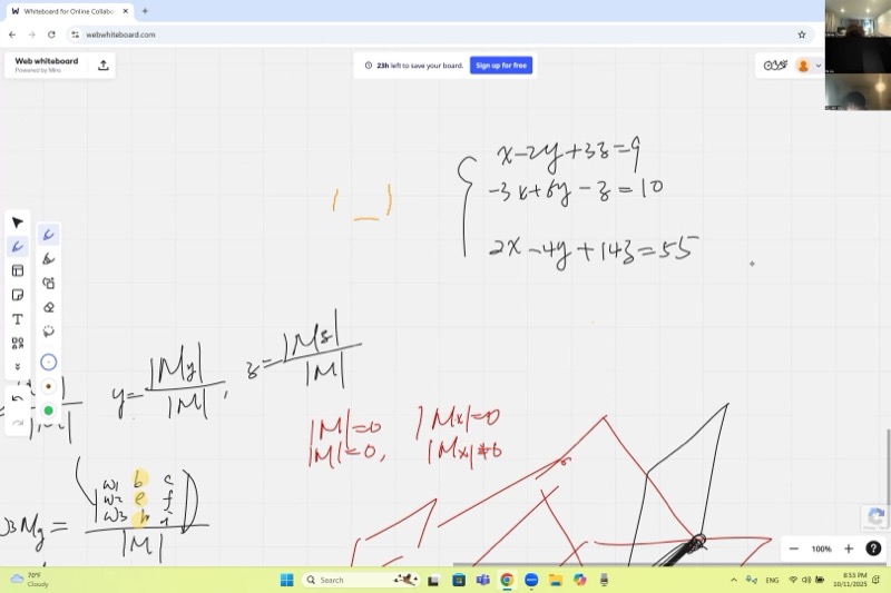 The algebra is tedious by hand — and that is exactly the point the lecture makes. Cramer’s rule is conceptually simple but computationally heavy. In practice we use it to understand structure, not to crunch numbers.