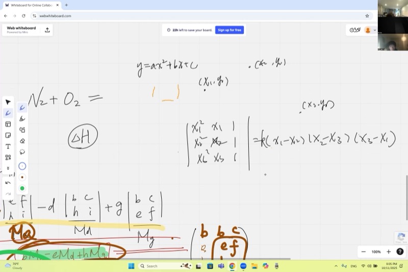 A key application: fitting a parabola \(y = ax^2 + bx + c\) through three points \((x_1, y_1)\), \((x_2, y_2)\), \((x_3, y_3)\).