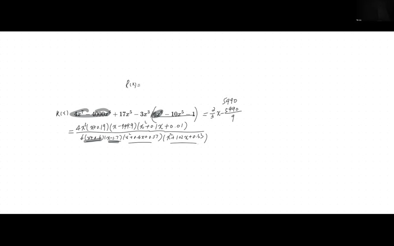 \[R(x) = \frac{4x^7 - 4000x^6 + \cdots}{6x^6 - 10x - 1}\]