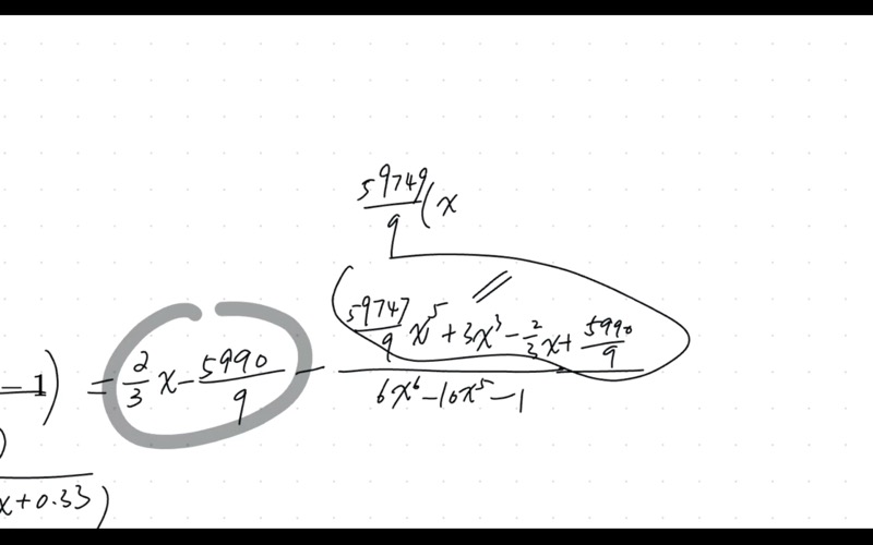 Step 4: The next term of the quotient comes from the new leading term divided by \(3x^6\), yielding the constant \(-\dfrac{5990}{9}\).