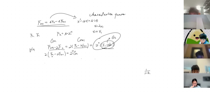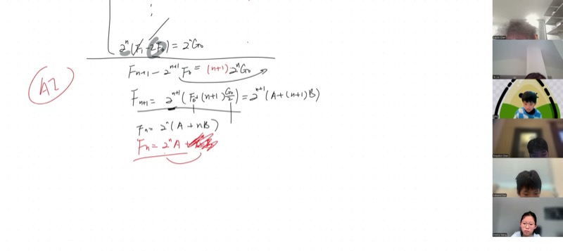 This is the heart of the lecture. We reduce the second-order recurrence to a first-order one, then telescope.