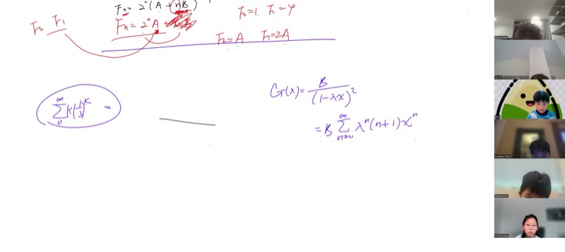 Each piece expands as a geometric series, giving \(f(n) = A\lambda_1^n + B\lambda_2^n\).